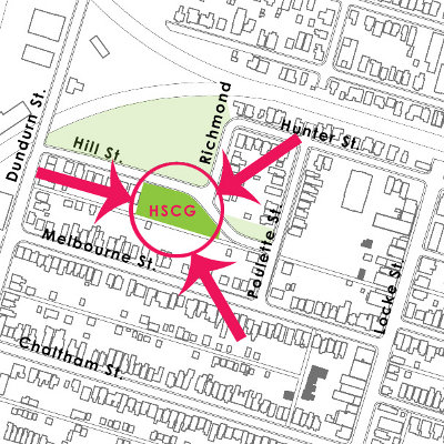 The garden is located in the Kirkendall North neighbourhood (population 2,740), between Dundurn & Locke, Hill & Melbourne Streets. The site is a 3,000m2 triangular piece of City-owned, vacant land south of Hill Street Park. The site is ideal for gardening, enjoying full sun with a variety of young trees and a decorative fence along its northern street side.